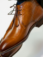 Make a statement with these pointed-toe lace-up boots, crafted from croc-embossed leather for a textured, sophisticated finish. Designed for those who demand style and edge, these boots are ideal for formal events or adding flair...