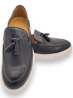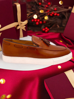 Elevate your casual style with leather tassel slip-on sneakers. A blend of chic design and easy comfort, these shoes are the perfect mix of laid-back and polished.