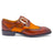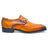 Turn heads with this bold single monk strap leather shoe in striking orange and blue. Crafted with a flexible leather outsole, it provides both comfort and standout style for any occasion.
